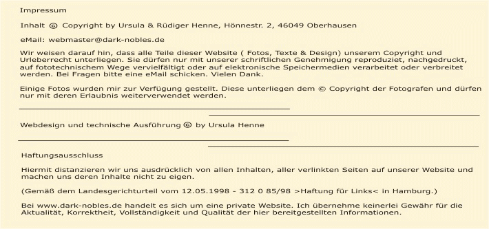 Ursula & Rüdiger Henne, Mitglied im DRC, VDH, JGHV und FCI - Impressum